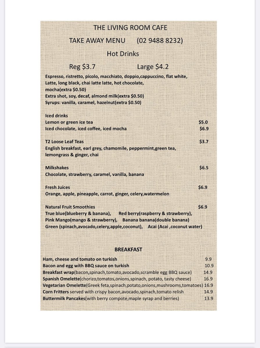 The menu accommodates both quick orders and casual dining, providing hearty meals as well as lighter fare suitable throughout the day. The variety of beverages complements the food choices, ensuring options for coffee breaks or full meals. Prices are clearly listed alongside each menu item, supporting straightforward selection for visitors.